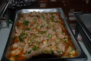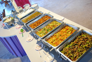 เช่น กุ้งผัดเปรี้ยวหวาน ไข่กระทะ พะแนงหมูสไลด์ ลูกชิ้นปลากรายผัดฉ่า ก๋วยจั๊บญวณ ขาหมูสมุนไพรจีน