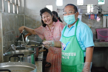 พณ.ท่านรัฐมนตรีนายแพทย์สุรวิทย์ คนสมบูรณ์ ท่านสส.ปาริชาด ชาลีเครือ นายกองค์การบริหารส่วนจังหวัดชัยภูมินายมนตรี ชาลีเครือ พร้อมท่านผู้ว่าฯชนะ นพสุวรรณ และภรรยา ร่วมเข้าครัว บ้านไร่อิงดอย เพื่อปรุงอาหารเลี้ยงขอบคุณสื่อฯ และหัวหน้าภาคส่วนรัฐ-เอกชน ในวันเปิดงานเทศกาลดอกกระเจียวบาน |