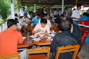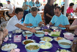 | นายเผด็จ หน.สนง.จังหวัดชัยภูมิ ท่านปลัดจังหวัดฯ นายมารุต นายอำเภอเทพสถิต ป.โย สจ.วอม คุณเปิ้ลเลขาสส.ปาริชาด และหน.ภาครัฐ-เอกชน สือมวลชน และแขกของจังหวัดฯ ร่วมรับประทานอาหารฝีมือท่านผู้ว่าฯ และภรรยา ณ.บ้านไร่อิงดอย |